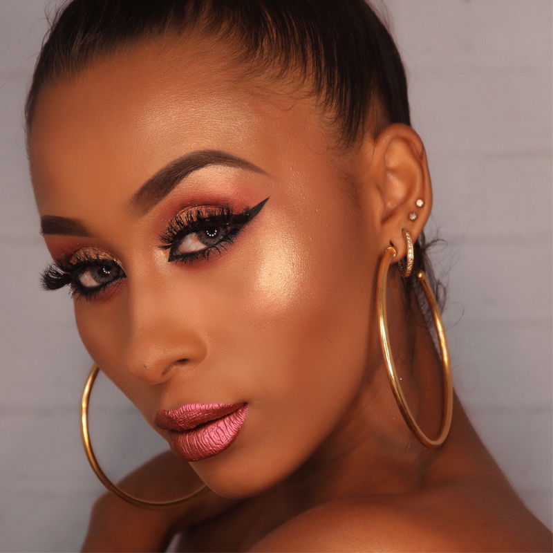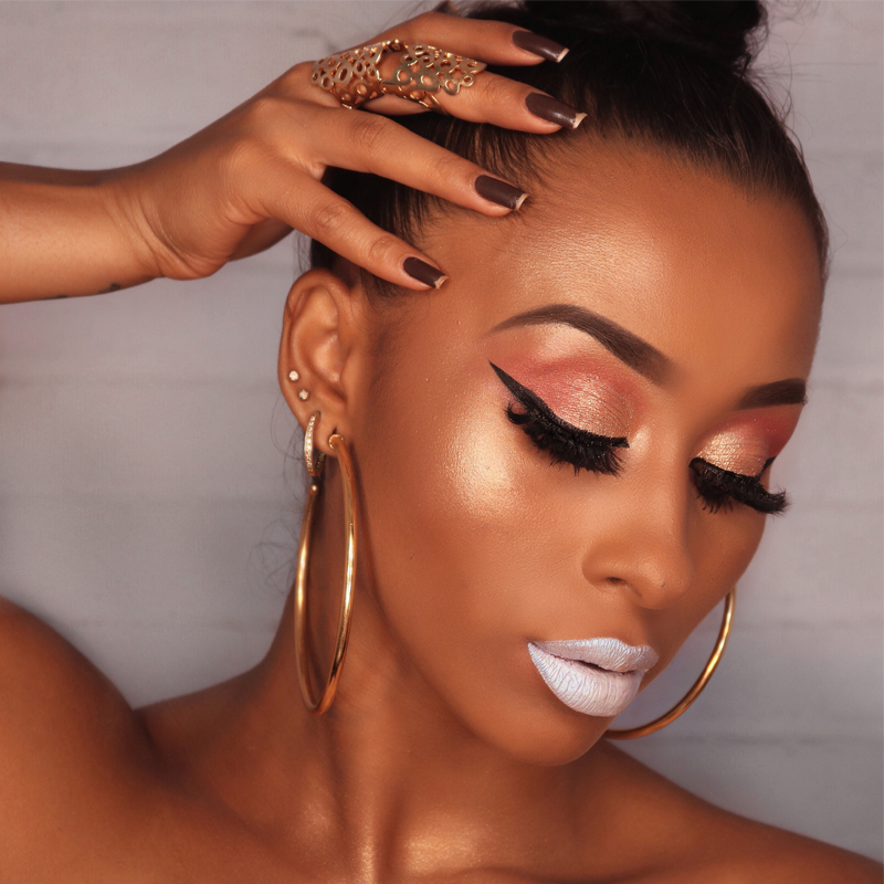 Essa é uma das minhas makes prediletas! Amo a combinação de esfumado marrom agatiado + brilho intenso + cílios poderosos. Aquele olhão que a gente respeita, né non? Como não babar na pele perfeita dessa mulher? O rosinha princesa nos lábios deu todo um equilíbrio ao look.