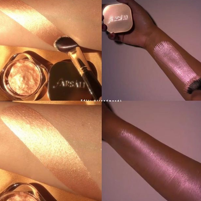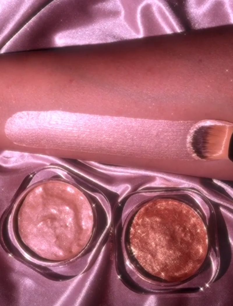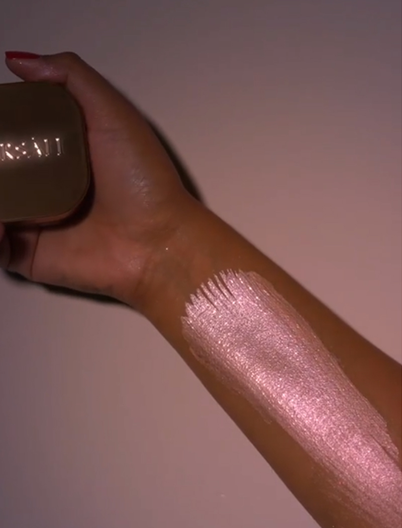 Ele funciona para todos os tipos de pele e pode ser utilizado como um iluminador tradicional, como base para o seu iluminador em pó, como sombra para os olhos e como iluminador corporal.