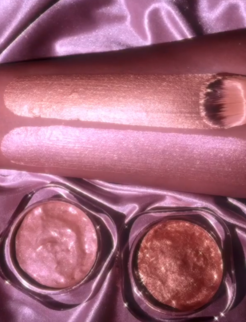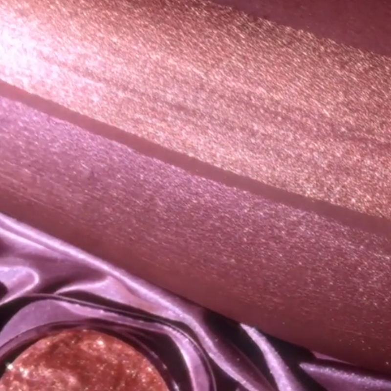 Já o Glowup é um iluminador champagne pink, com micro brilhos na cor magenta. É uma cor mais mutante, porque dependendo da luz ele pode parecer mais dourado.