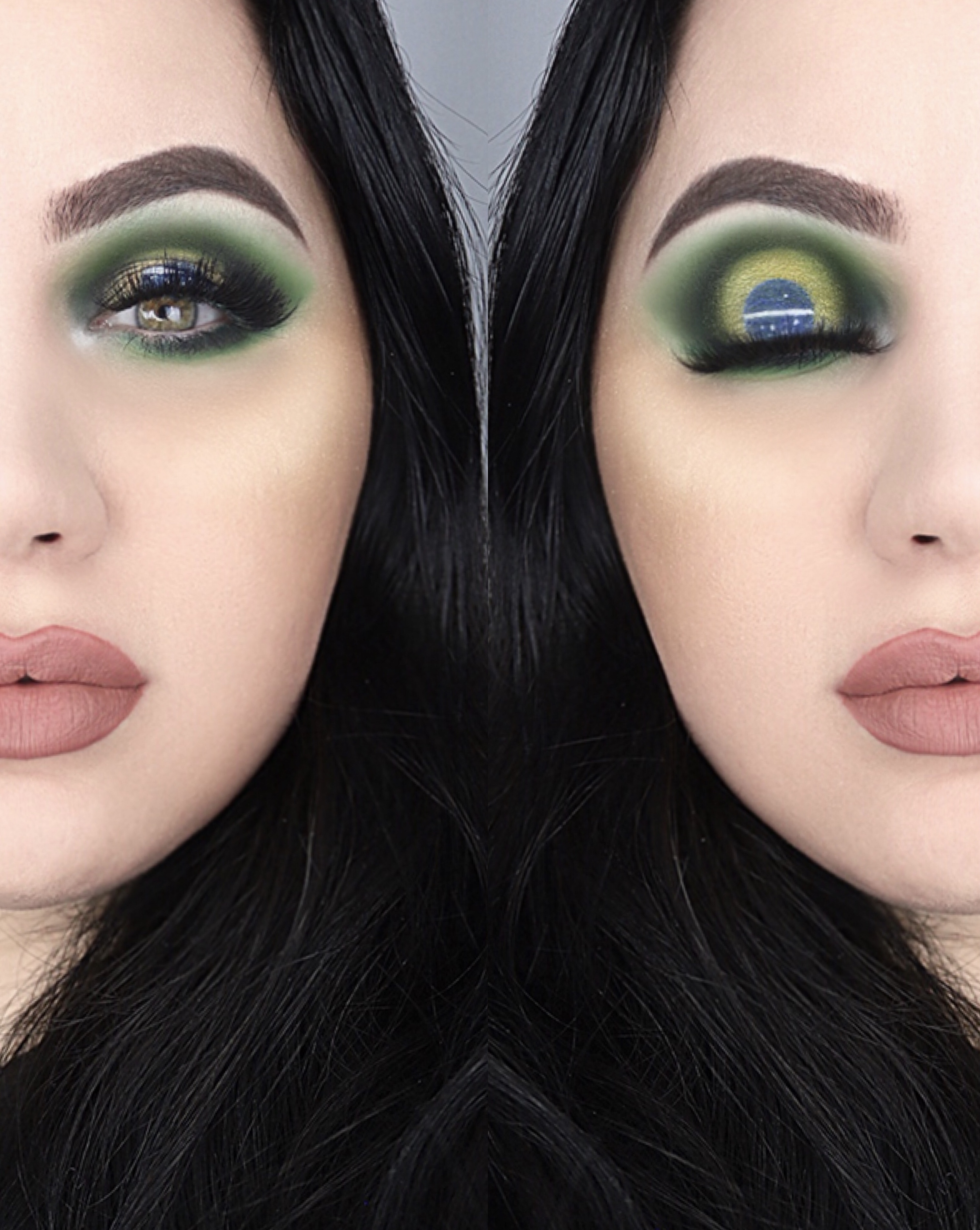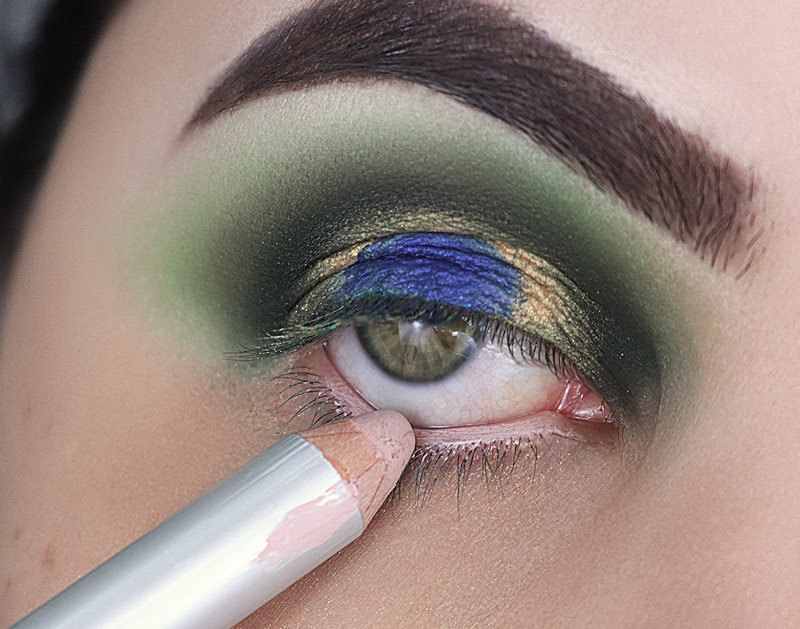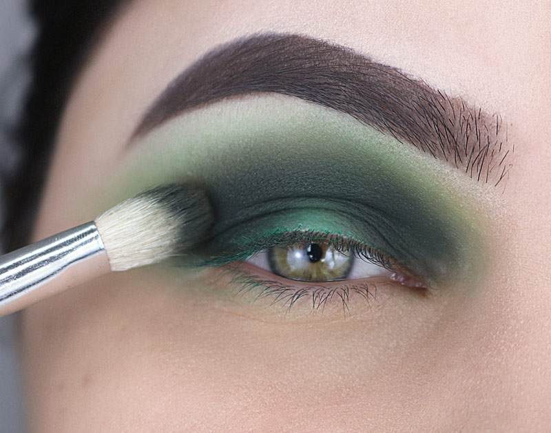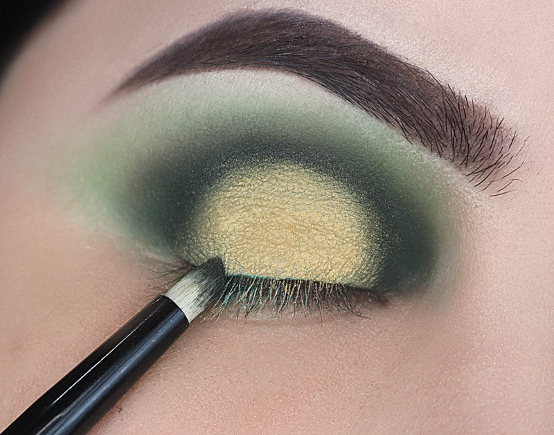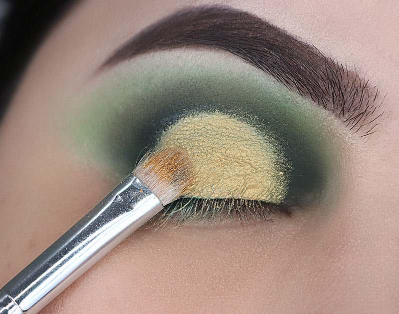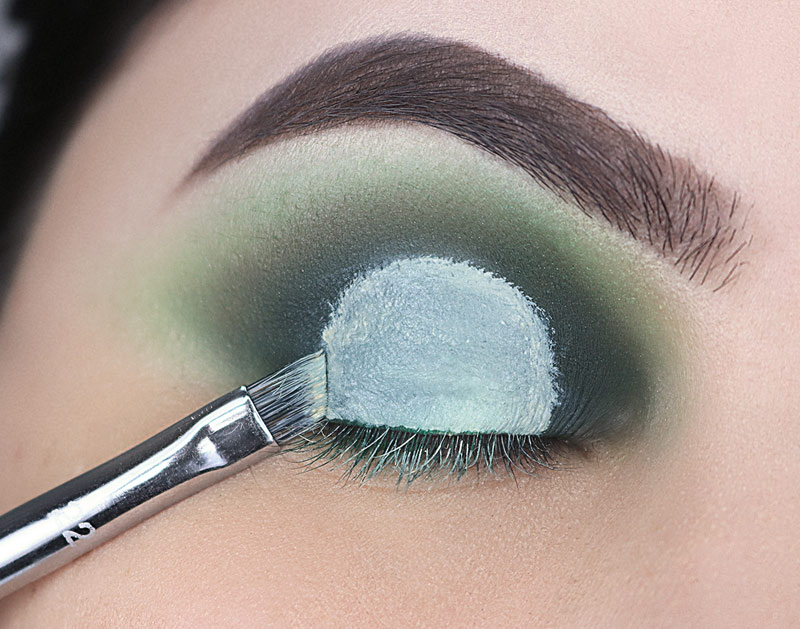 E esfumo de leve BEMMM rente aos cílios inferiores do meio pra fora, deixando esse verde escuro dentro do verde mais claro e encontrando no canto externo com o verde escuro da parte superior do olho.