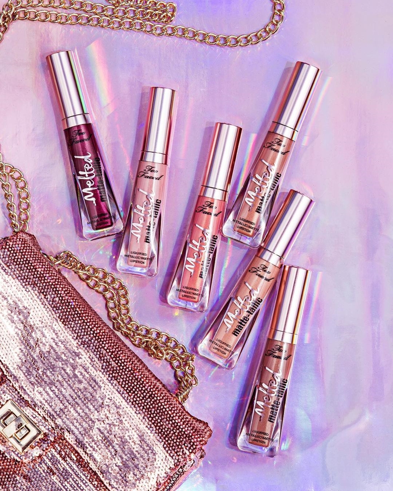 - Os novos Melted Matte-tallic já estão disponíveis no site da Too Faced e cada batom custa U$ 21.