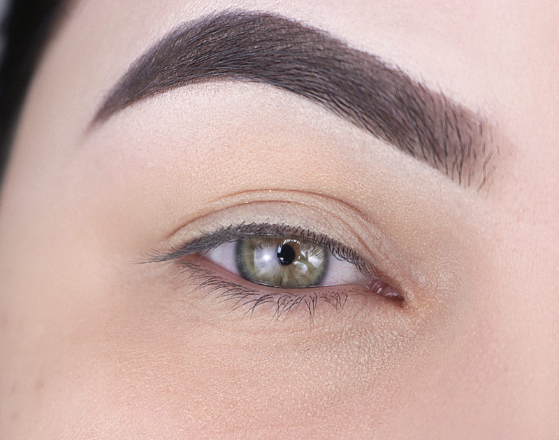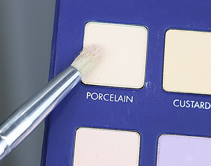Começo a make com sobrancelha arrumada, corretivo abaixo da sobrancelha e corretivo e pó em todo o contorno do olho.