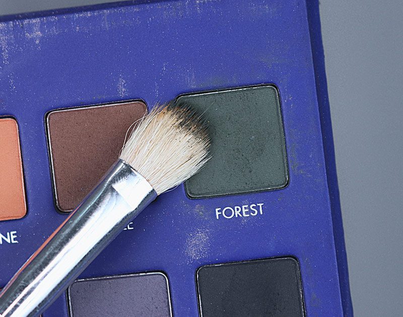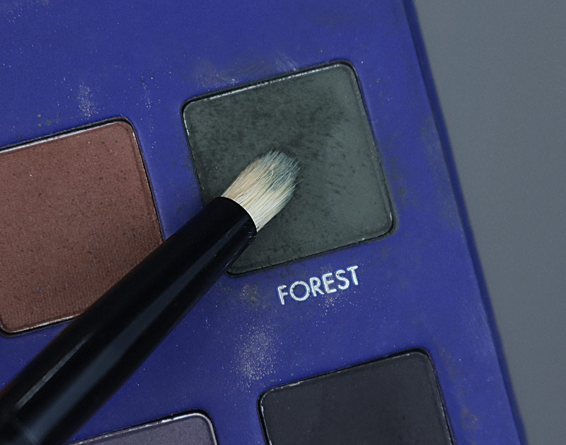 Esfumei tudo com pincel fofinho até chegar perto da sobrancelha, lembrando de tirar a pressão do pincel conforme subo e levo pra fora para deixar o tom cada vez mais apagado. Só de controlar a pressão você já cria esse degradê de cores. O corretivo abaixo da sobrancelha é essencial também, isso porque o verde quando se encontra com ele se torna mais claro automaticamente.