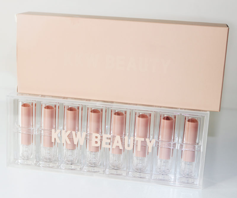 Os batons vem todos nessa embalagem de acrílico bem linda mixada com um tom de bege claro, o tom oficial da KKW BEAUTY. A embalagem é bonita mas levinha, sabe? Não é aquela embalagem com peso que a gente ama, parece mais frágil.